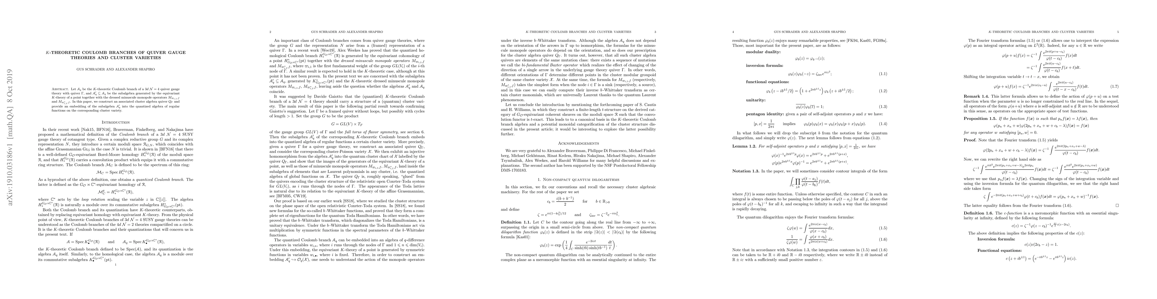 Let $\mathscr{A}_q$ be the $K$-theoretic Coulomb branch of a $3d$ $\mathcal{N}=4$ quiver gauge theory with quiver $\Gamma$, and $\mathscr{A}'_q \subseteq \mathscr{A}_q$ be the subalgebra generated by the equivariant $K$-theory of a point together with the dressed minuscule monopole operators $M_{\varpi_{i,1},f}$ and $M_{\varpi^*_{i,1},f}$. In this paper, we construct an associated cluster algebra quiver $\mathcal{Q}_\Gamma$ and provide an embedding of the subalgebra $\mathscr{A}'_q$ into the quantized algebra of regular functions on the corresponding cluster variety.