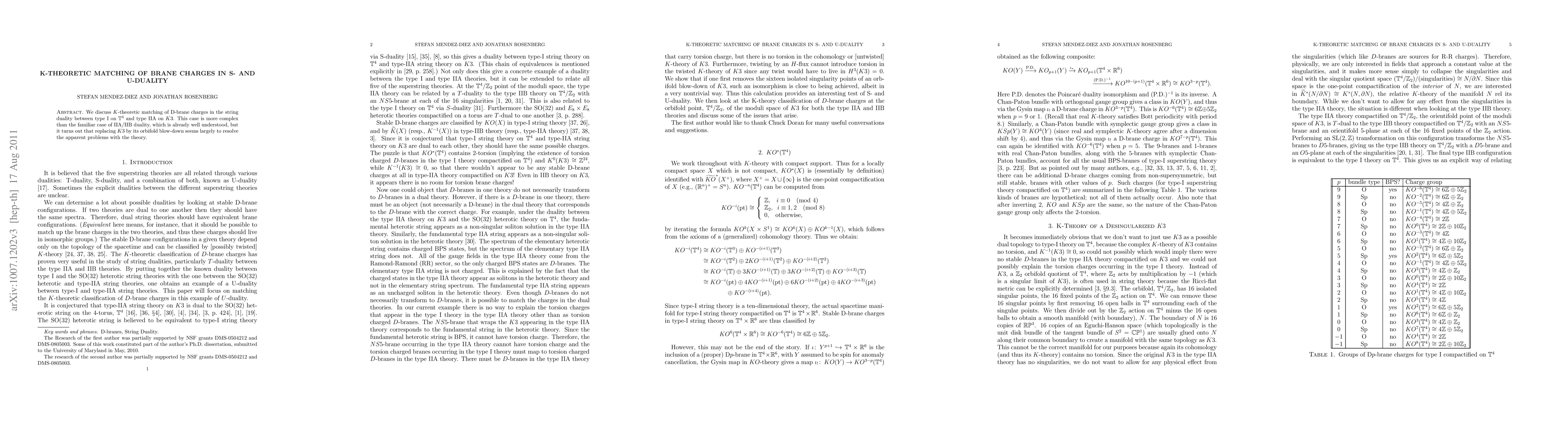 We discuss K-theoretic matching of D-brane charges in the string duality between type I on the 4-torus and type IIA on a K3 surface. This case is more complex than the familiar case of IIA/IIB duality, which is already well understood, but it turns out that replacing K3 by its orbifold blow-down seems largely to resolve the apparent problems with the theory. In particular, this allows for precise matching of 2-torsion brane charges.