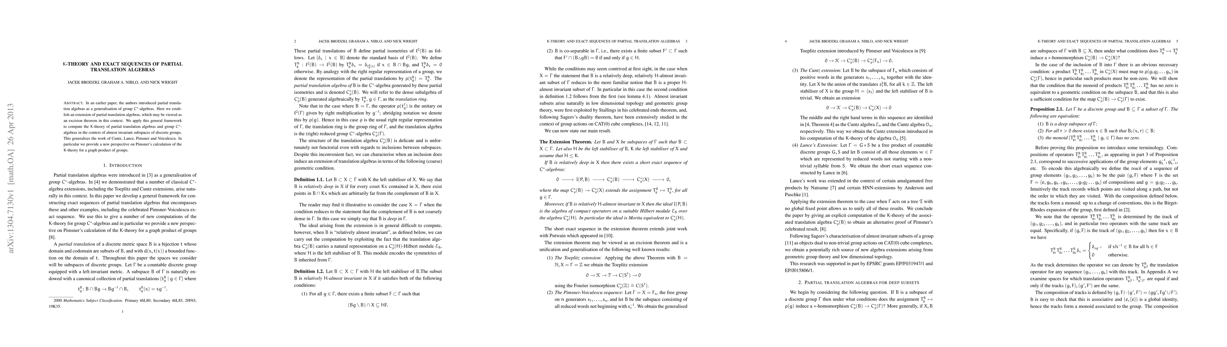 This paper extends partial translation algebras, generalizing group C*-algebras, and establishes an excision theorem for these extensions. The authors compute K-theory of these algebras using almost invariant subspaces of discrete groups, offering new insights into Pimsner's work on graph products of groups' K-theory.