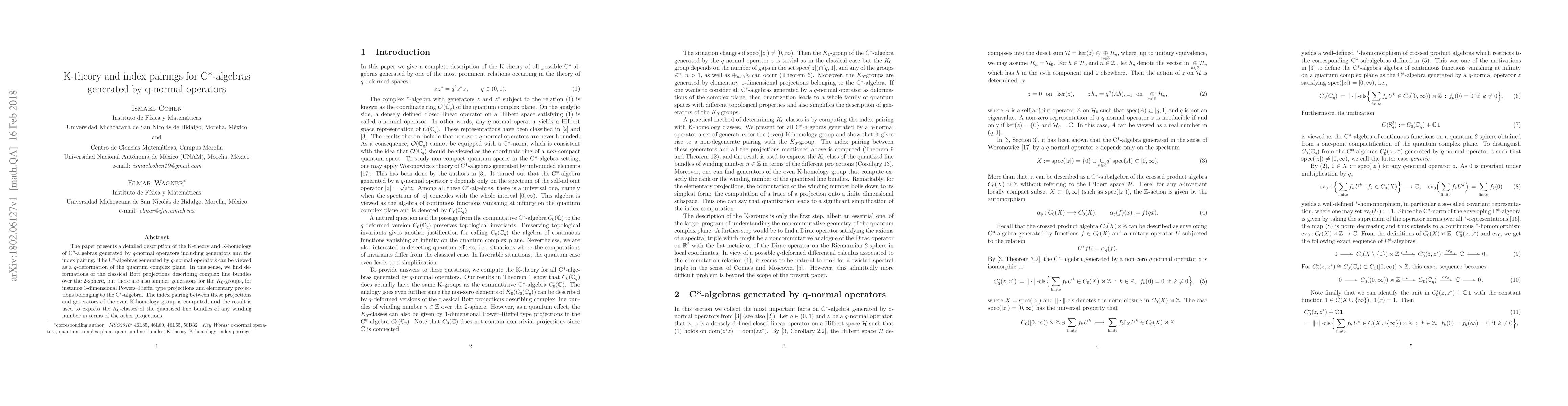 This paper explores the K-theory and K-homology of C*-algebras generated by q-normal operators, revealing their role as a q-deformation of the quantum complex plane. It computes the index pairing between these operators and generators of even K-homology, expressing quantized line bundles' K_0-classes in terms of simpler projections.