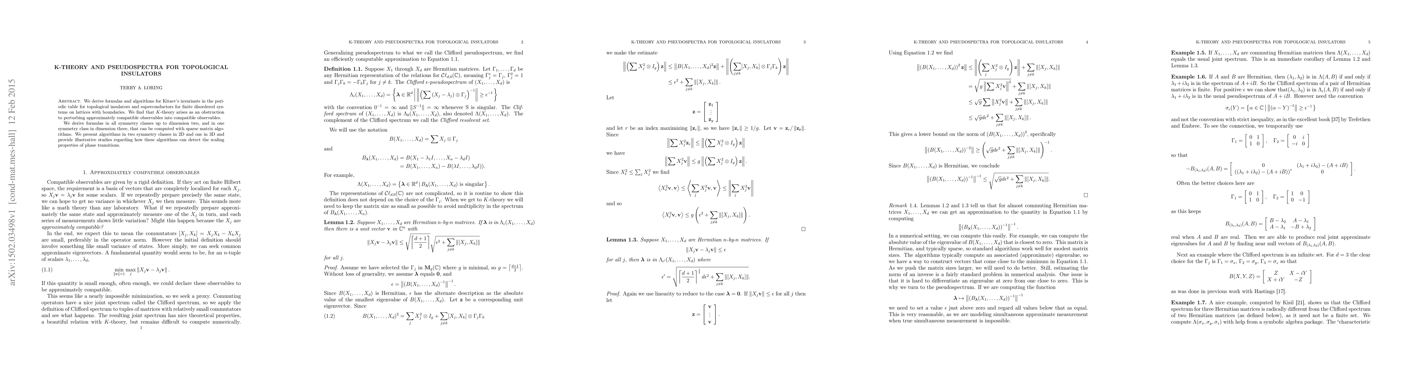 Researchers developed formulas to calculate Kitaev's invariants for topological insulators and superconductors in disordered systems, showing that K-theory emerges as an obstruction when trying to perturb compatible observables.
