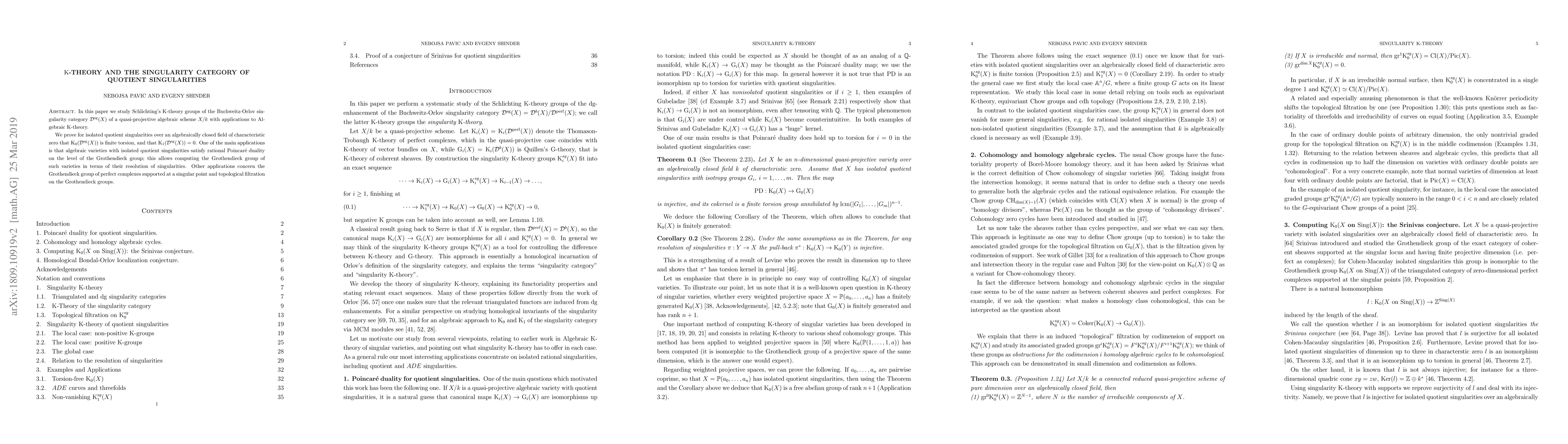 In this paper we study Schlichting's K-theory groups of the Buchweitz-Orlov singularity category $\mathcal{D}^{sg}(X)$ of a quasi-projective algebraic scheme $X/k$ with applications to Algebraic K-theory. We prove that for isolated quotient singularities $\mathrm{K}_0(\mathcal{D}^{sg}(X))$ is finite torsion, and that $\mathrm{K}_1(\mathcal{D}^{sg}(X)) = 0$. One of the main applications is that algebraic varieties with isolated quotient singularities satisfy rational Poincare duality on the level of the Grothendieck group; this allows computing the Grothendieck group of such varieties in terms of their resolution of singularities. Other applications concern the Grothendieck group of perfect complexes supported at a singular point and topological filtration on the Grothendieck groups.