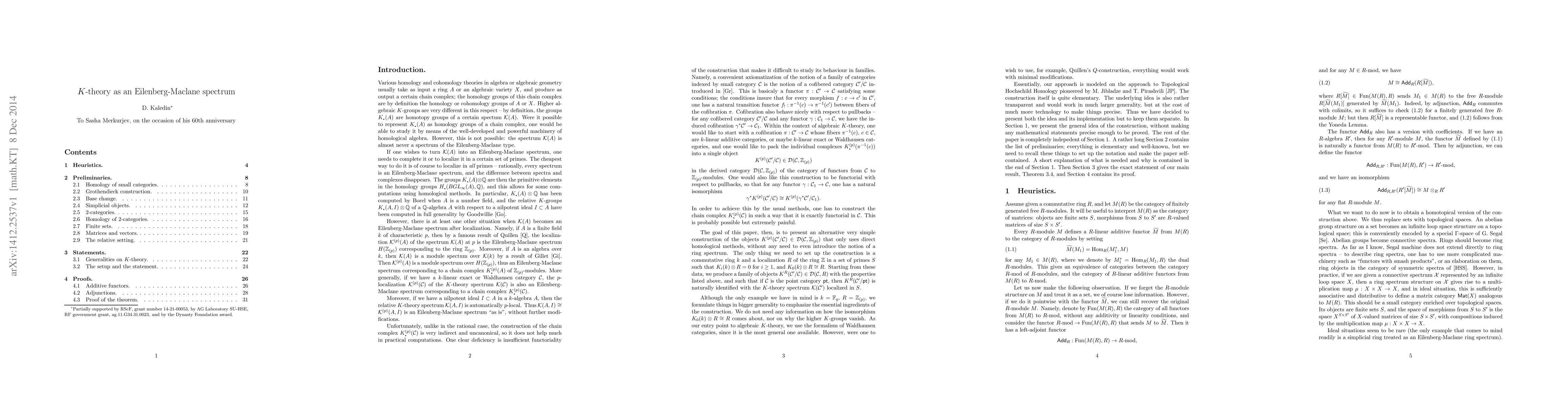 This paper constructs the $K$-theory spectrum for an additive Waldhausen category over a finite field, showing it localizes to an Eilenberg-Maclane spectrum, or chain complex, using elementary homological algebra without relying on advanced notions like ring or module spectra.