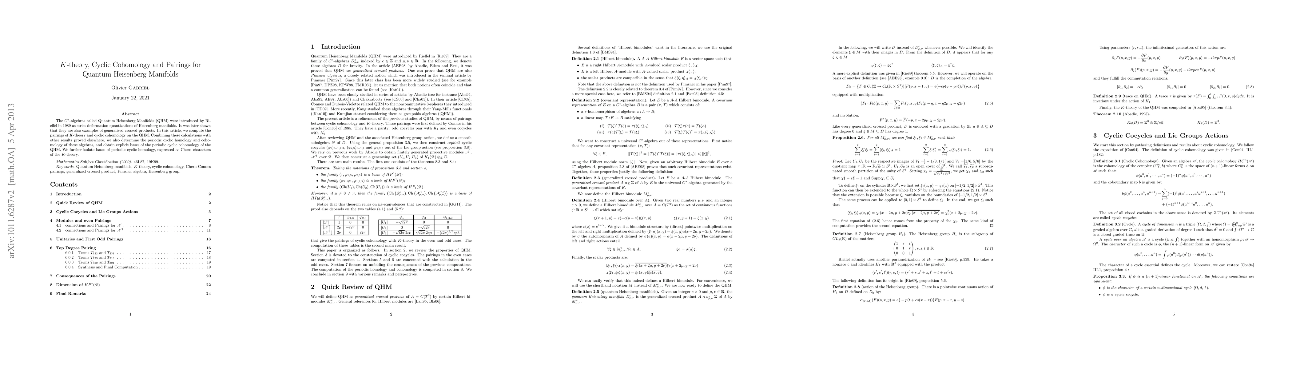 The C*-algebras called Quantum Heisenberg Manifolds (QHM) were introduced by Rieffel in 1989 as strict deformation quantizations of Heisenberg manifolds. In this article, we compute the pairings of K-theory and cyclic cohomology on the QHM. Combining these calculations with other results proved elsewhere, we also determine the periodic cyclic homology and cohomology of these algebras, and obtain explicit bases of the periodic cyclic cohomology of the QHM. We further isolate bases of periodic cyclic homology, expressed as Chern characters of the K-theory.