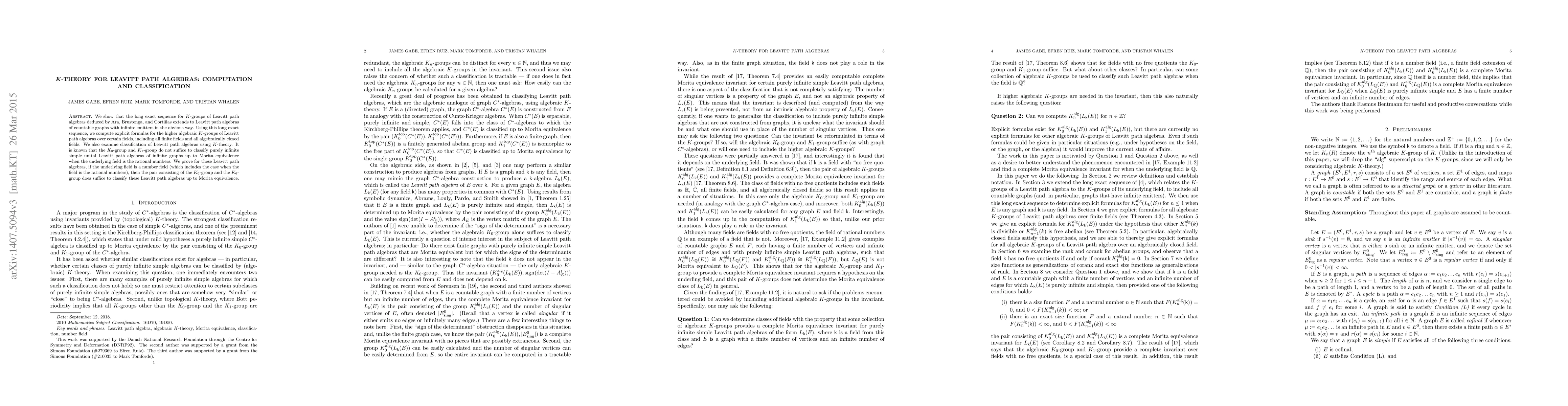 We show that the long exact sequence for K-groups of Leavitt path algebras deduced by Ara, Brustenga, and Cortinas extends to Leavitt path algebras of countable graphs with infinite emitters in the obvious way. Using this long exact sequence, we compute explicit formulas for the higher algebraic K-groups of Leavitt path algebras over certain fields, including all finite fields and all algebraically closed fields. We also examine classification of Leavitt path algebras using K-theory. It is known that the K_0-group and K_1-group do not suffice to classify purely infinite simple unital Leavitt path algebras of infinite graphs up to Morita equivalence when the underlying field is the rational numbers. We prove for these Leavitt path algebras, if the underlying field is a number field (which includes the case when the field is the rational numbers), then the pair consisting of the K_0-group and the K_6-group does suffice to classify these Leavitt path algebras up to Morita equivalence.