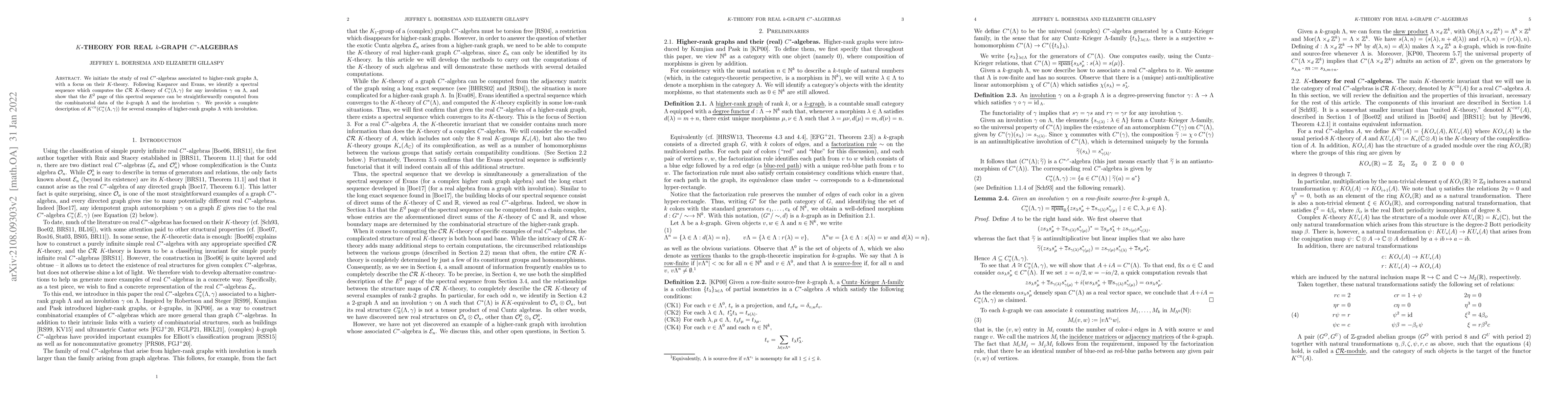 We initiate the study of real $C^*$-algebras associated to higher-rank graphs $\Lambda$, with a focus on their $K$-theory. Following Kasparov and Evans, we identify a spectral sequence which computes the $\mathcal{CR}$ $K$-theory of $C^*_{\mathbb R} (\Lambda, \gamma)$ for any involution $\gamma$ on $\Lambda$, and show that the $E^2$ page of this spectral sequence can be straightforwardly computed from the combinatorial data of the $k$-graph $\Lambda$ and the involution $\gamma$. We provide a complete description of $K^{CR}(C^*_{\mathbb R}(\Lambda, \gamma))$ for several examples of higher-rank graphs $\Lambda$ with involution.