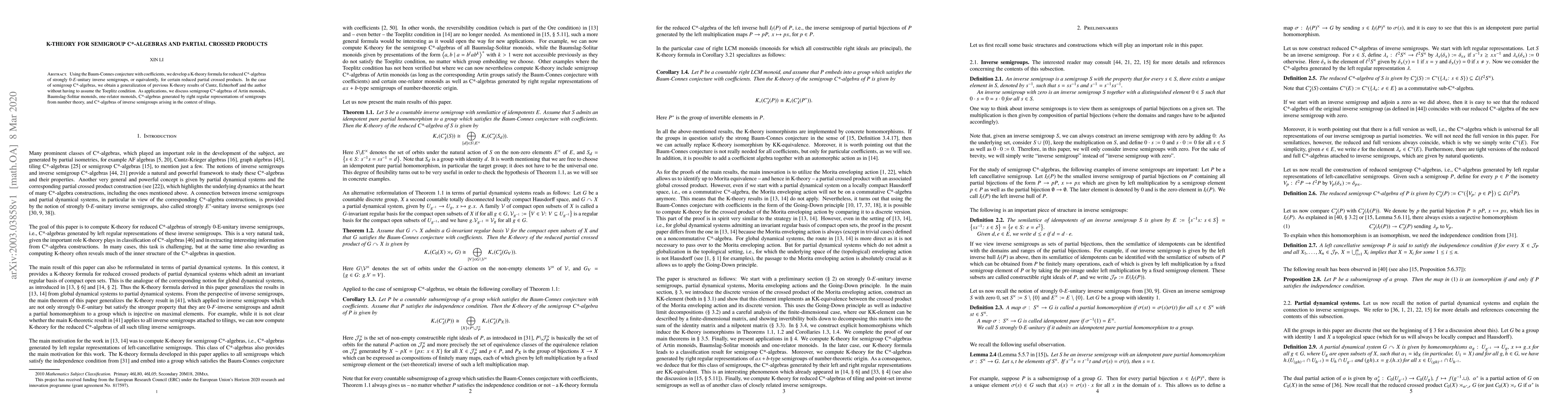 Using the Baum-Connes conjecture with coefficients, we develop a K-theory formula for reduced C*-algebras of strongly $0$-$E$-unitary inverse semigroups, or equivalently, for certain reduced partial crossed products. In the case of semigroup C*-algebras, we obtain a generalization of previous K-theory results of Cuntz, Echterhoff and the author without having to assume the Toeplitz condition. As applications, we discuss semigroup C*-algebras of Artin monoids, Baumslag-Solitar monoids, one-relator monoids, C*-algebras generated by right regular representations of semigroups from number theory, and C*-algebras of inverse semigroups arising in the context of tilings.