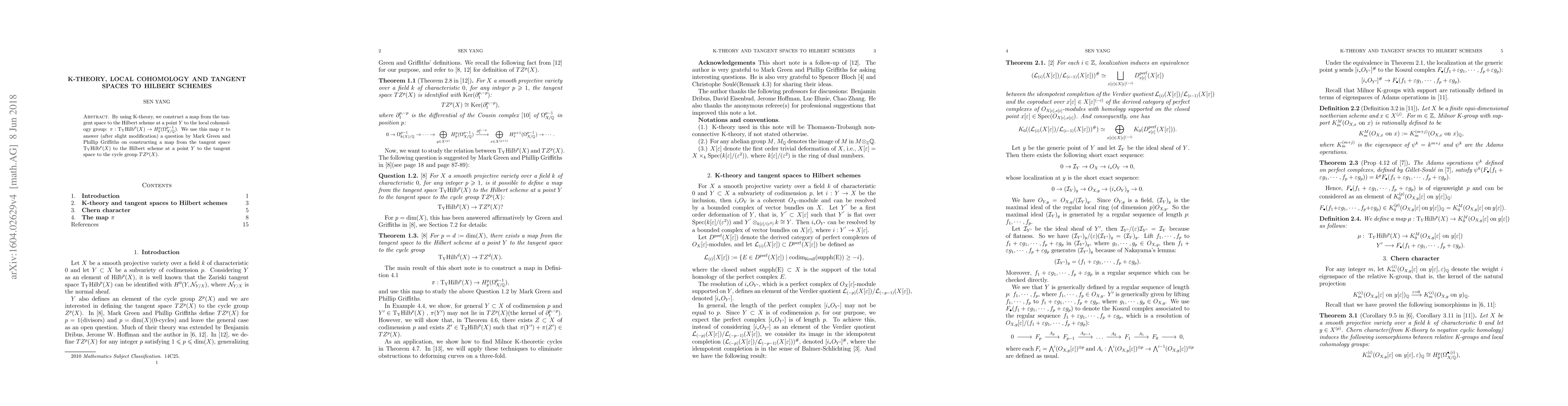 By using K-theory, we construct a map from the tangent space to the Hilbert scheme at a point Y to the local cohomology group. And we use this map to answer affirmatively(after slight modification) a question by Mark Green and Phillip Griffiths in [8] on constructing a map from the tangent space to the Hilbert scheme to the tangent space to the cycle group.