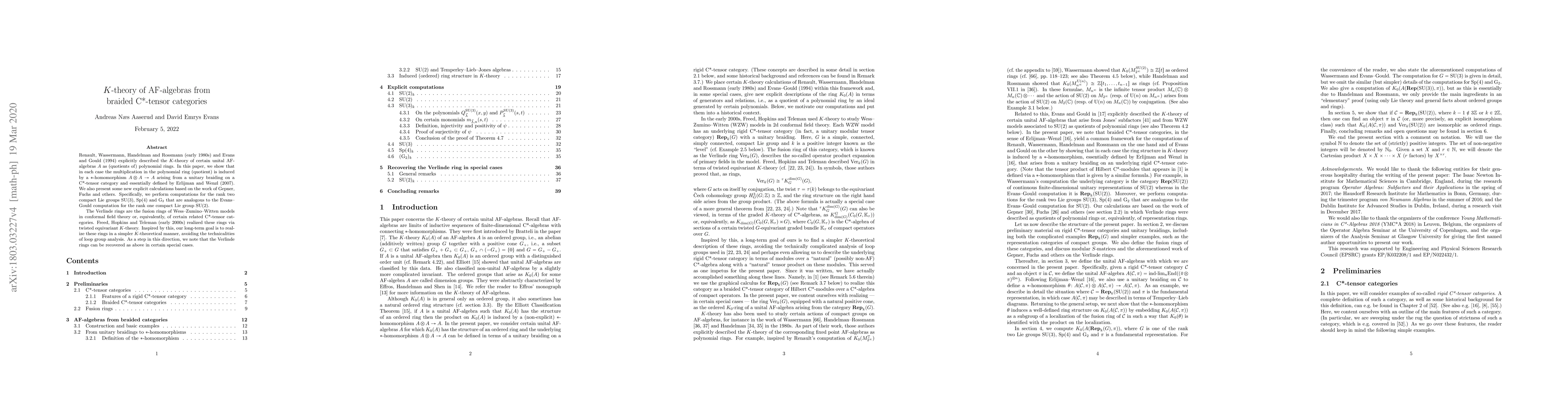 Renault, Wassermann, Handelman and Rossmann (early 1980s) and Evans and Gould (1994) explicitly described the $K$-theory of certain unital AF-algebras $A$ as (quotients of) polynomial rings. In this paper, we show that in each case the multiplication in the polynomial ring (quotient) is induced by a $*$-homomorphism $A\otimes A\to A$ arising from a unitary braiding on a C*-tensor category and essentially defined by Erlijman and Wenzl (2007). We also present some new explicit calculations based on the work of Gepner, Fuchs and others. Specifically, we perform computations for the rank two compact Lie groups SU(3), Sp(4) and G$_2$ that are analogous to the Evans-Gould computation for the rank one compact Lie group SU(2). The Verlinde rings are the fusion rings of Wess-Zumino-Witten models in conformal field theory or, equivalently, of certain related C*-tensor categories. Freed, Hopkins and Teleman (early 2000s) realized these rings via twisted equivariant $K$-theory. Inspired by this, our long-term goal is to realize these rings in a simpler $K$-theoretical manner, avoiding the technicalities of loop group analysis. As a step in this direction, we note that the Verlinde rings can be recovered as above in certain special cases.