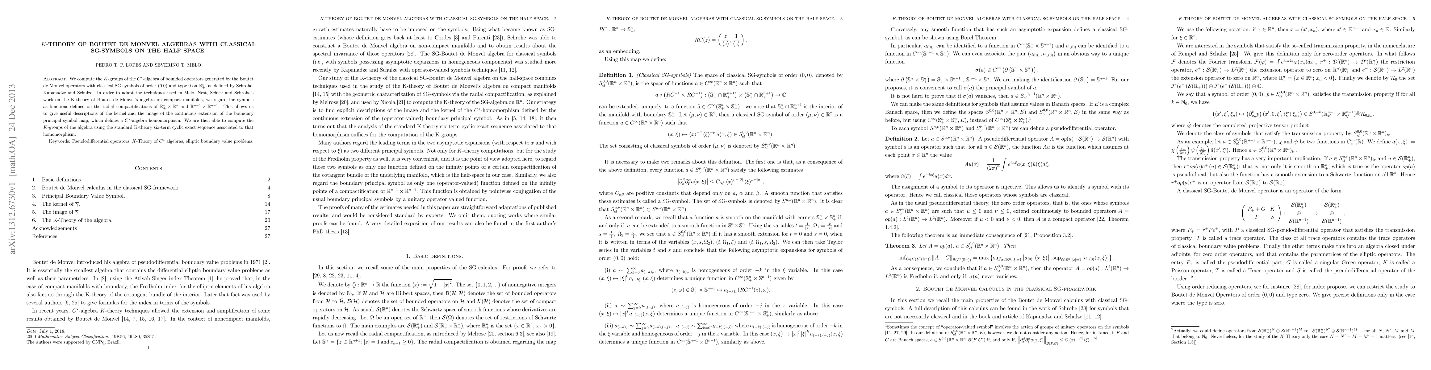 This paper computes the $K$-groups of the $C^{*}$-algebra of operators generated by Boutet de Monvel operators with classical SG-symbols on $\mathbb{R}_{+}^{n}$. The authors adapt techniques from previous studies on compact manifolds by viewing symbols on radial compactifications, leading to a cyclic exact sequence for $K$-theory computation.