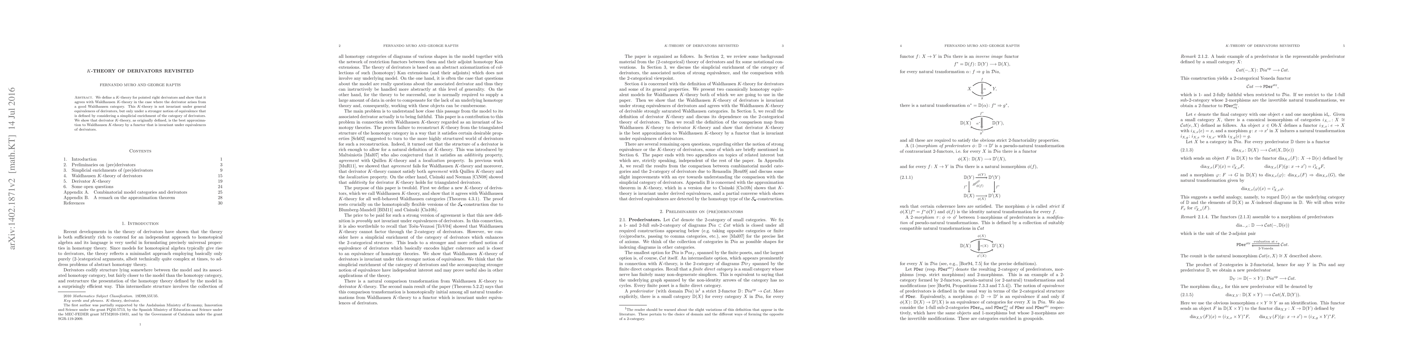 The paper introduces a refined K-theory for derivators and establishes its relationship with Waldhausen K-theory, utilizing a novel, simplicially enriched notion of equivalence for derivators.