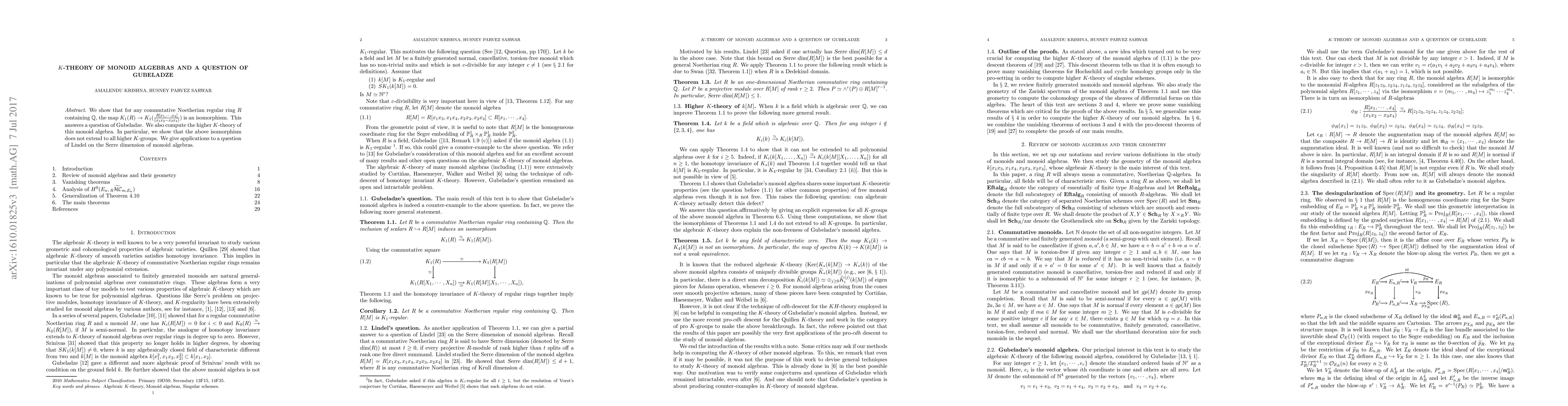 This paper demonstrates that for a commutative noetherian regular ring $R$ containing $\Q$, the map $K_1(R) \to K_1(R[x_1, \cdots , x_4] / (x_1x_2 - x_3x_4))$ is an isomorphism, resolving a question posed by Gubeladze. It also computes the higher $K$-theory of this monoid algebra, revealing that the isomorphism does not extend to higher $K$-groups.