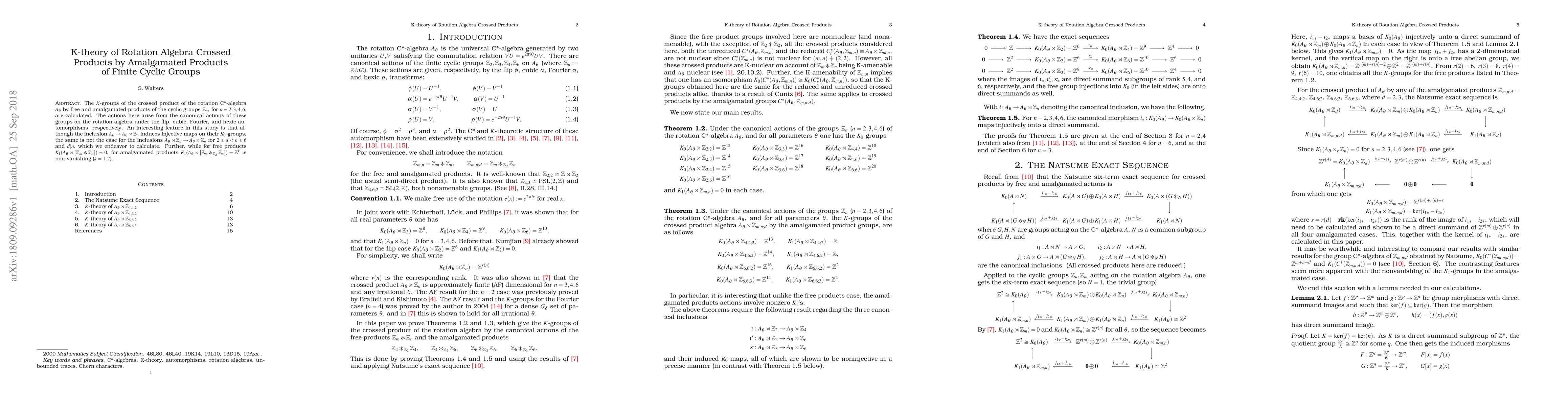 This research paper calculates the K-groups of rotation algebras crossed products with finite cyclic groups, finding non-vanishing K1 values for certain amalgamated products.