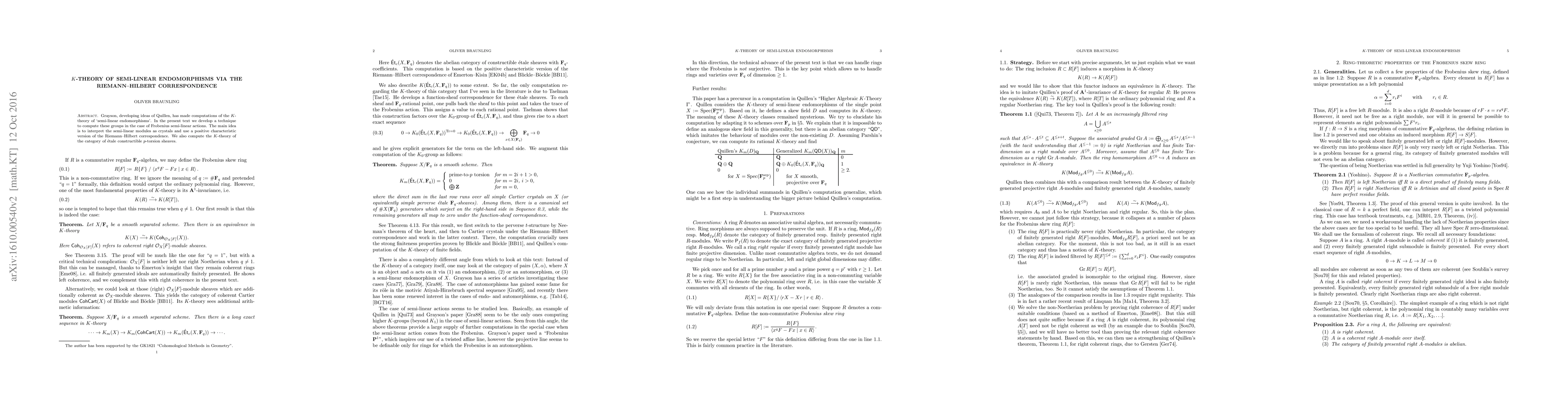 Summary: This paper develops a method to compute the K-theory of semi-linear endomorphisms, particularly for Frobenius actions, using crystals and a Riemann-Hilbert correspondence in positive characteristic. It also calculates the K-theory for the category of étale constructible p-torsion sheaves.