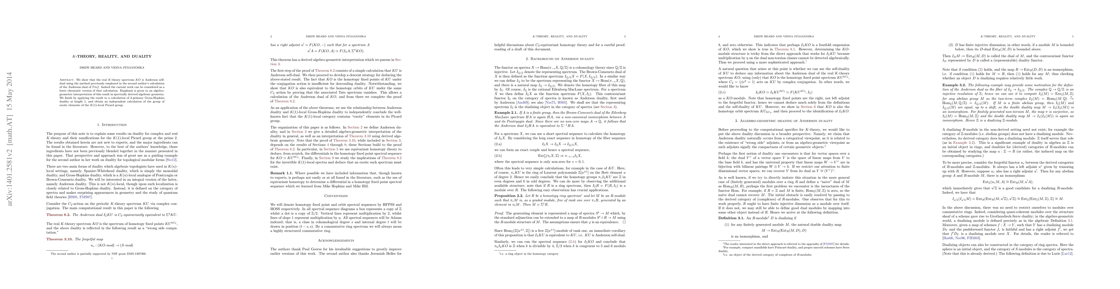 This paper demonstrates the self-duality of the real K-theory spectrum KO using Anderson duality, extending previous methods applied to Tmf. The findings are interpreted through algebro-geometric lenses in spectrally derived algebraic geometry, and are used to calculate 2-primary Gross-Hopkins duality at height 1, revealing the group of exotic elements in the K(1)-local Picard group.