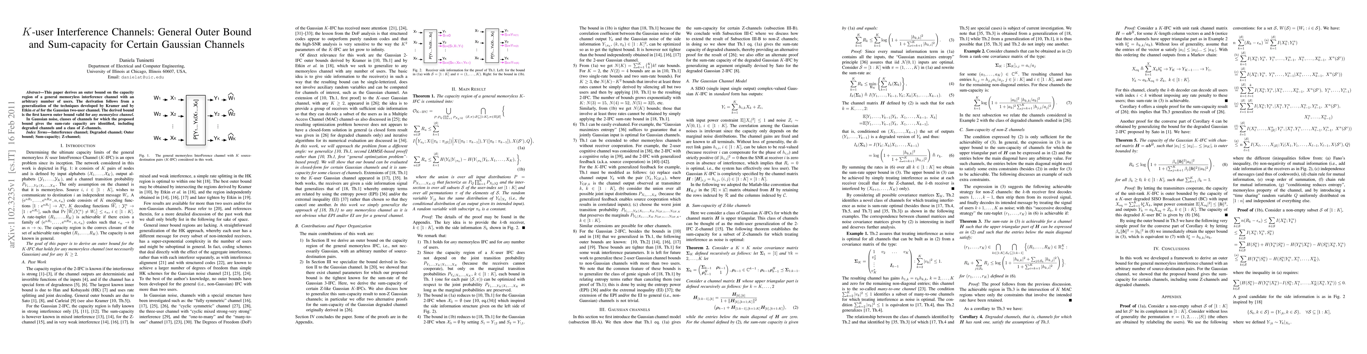This paper presents a new outer bound for the capacity region of general K-user memoryless interference channels, extending techniques from the Gaussian two-user case. It identifies specific Gaussian channels where this bound achieves the sum-rate capacity, including degraded and Z-channels.