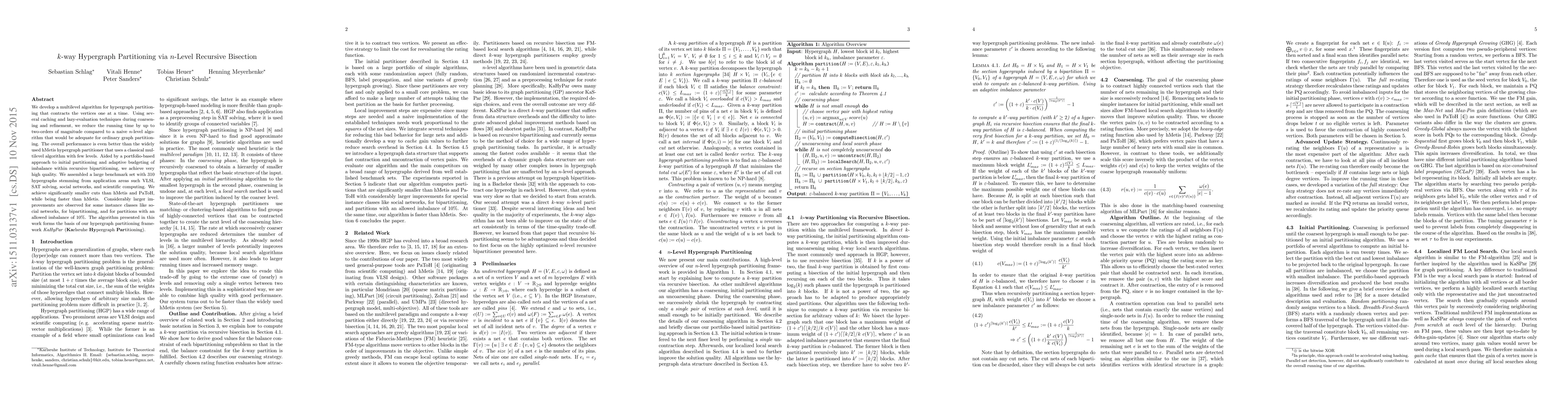 This paper introduces a multilevel algorithm for k-way hypergraph partitioning that significantly reduces running time through caching and lazy-evaluation techniques, achieving better performance than hMetis and PaToH, especially for social networks and partitions with 10% imbalance. The method forms the basis of the KaHyPar framework.