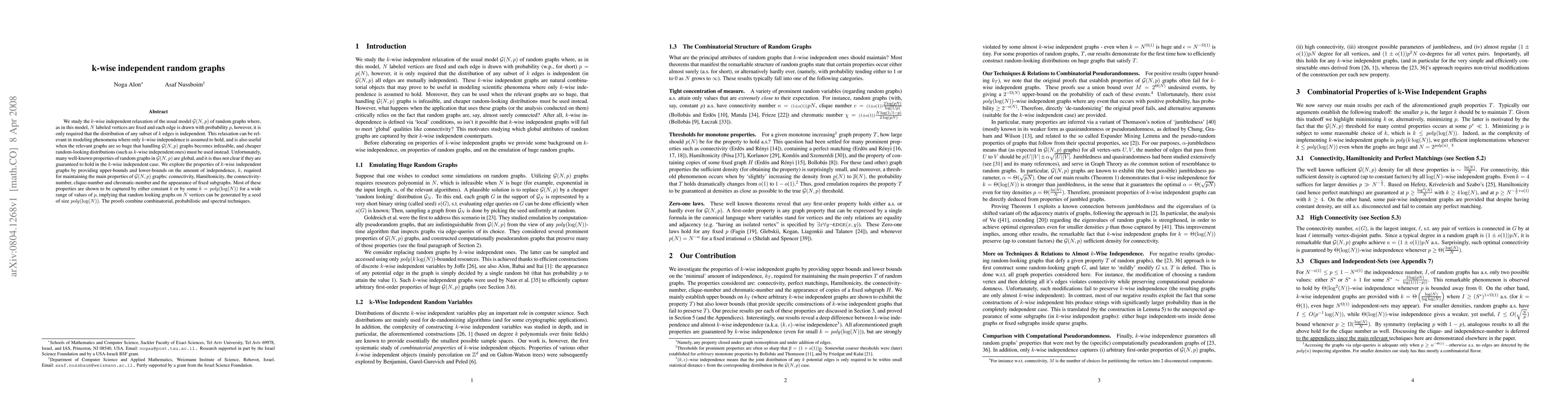 Researchers develop a new model of random graphs that allows for k-wise independence, finding that most key properties like connectivity and chromatic number can be maintained with relatively small values of k.