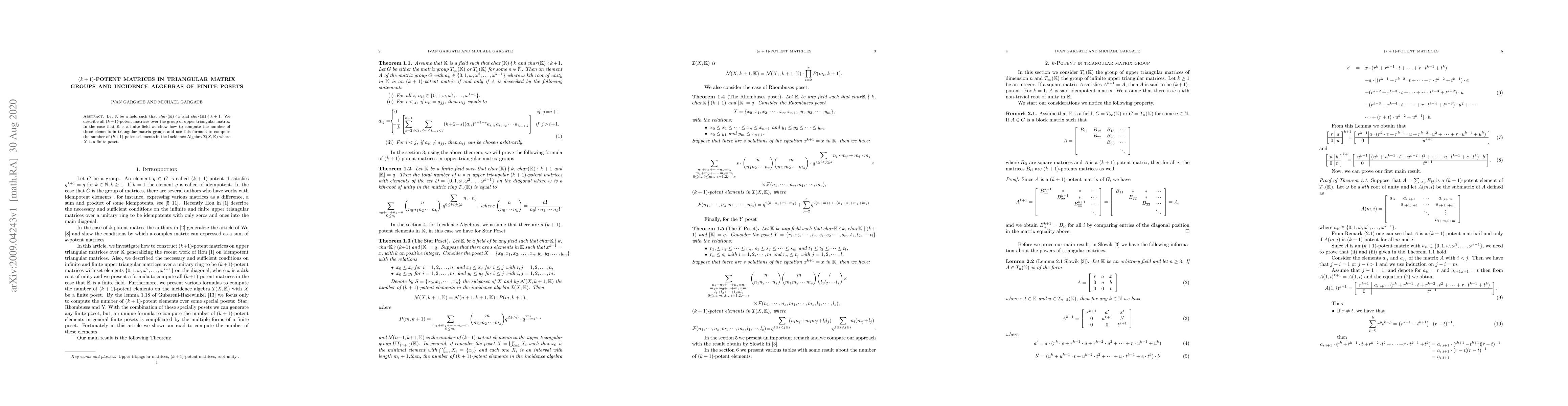 Researchers describe $(k+1)$-potent matrices in triangular matrix groups and their connection to incidence algebras of finite posets, providing a formula for counting these elements in specific cases.
