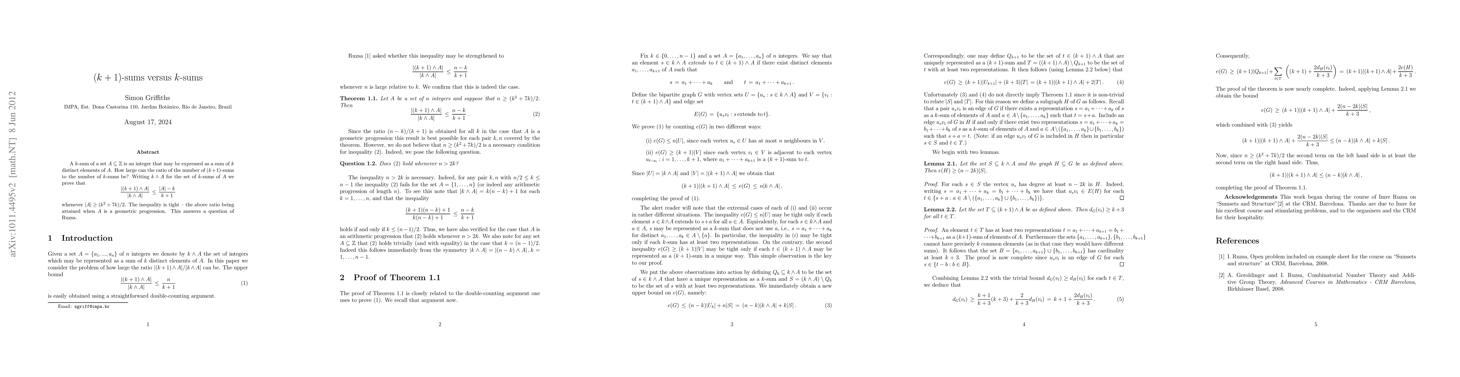 A $k$-sum of a set $A\subseteq \mathbb{Z}$ is an integer that may be expressed as a sum of $k$ distinct elements of $A$. How large can the ratio of the number of $(k+1)$-sums to the number of $k$-sums be? Writing $k\wedge A$ for the set of $k$-sums of $A$ we prove that \[ \frac{|(k+1)\wedge A|}{|k\wedge A|}\, \le \, \frac{|A|-k}{k+1} \] whenever $|A|\ge (k^{2}+7k)/2$. The inequality is tight -- the above ratio being attained when $A$ is a geometric progression. This answers a question of Ruzsa.