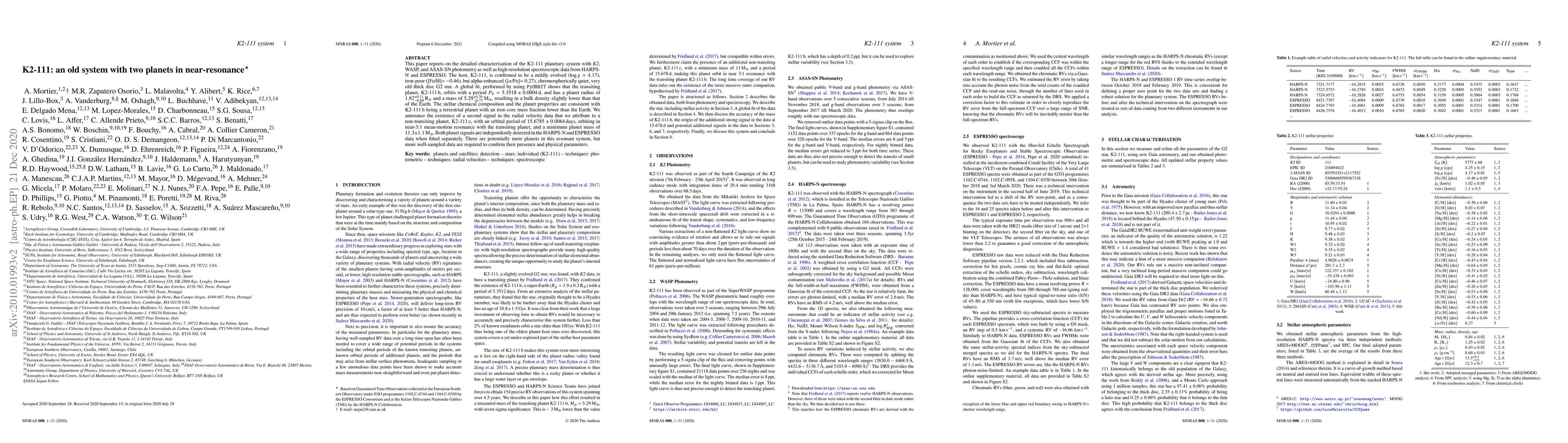 Astronomers discovered a new planet system, K2-111, with two planets in near-resonance orbiting an old, quiet star. The system includes a 1.8R Earth-sized planet with a lower iron core mass fraction than Earth and a second, non-transiting planet with a larger mass.