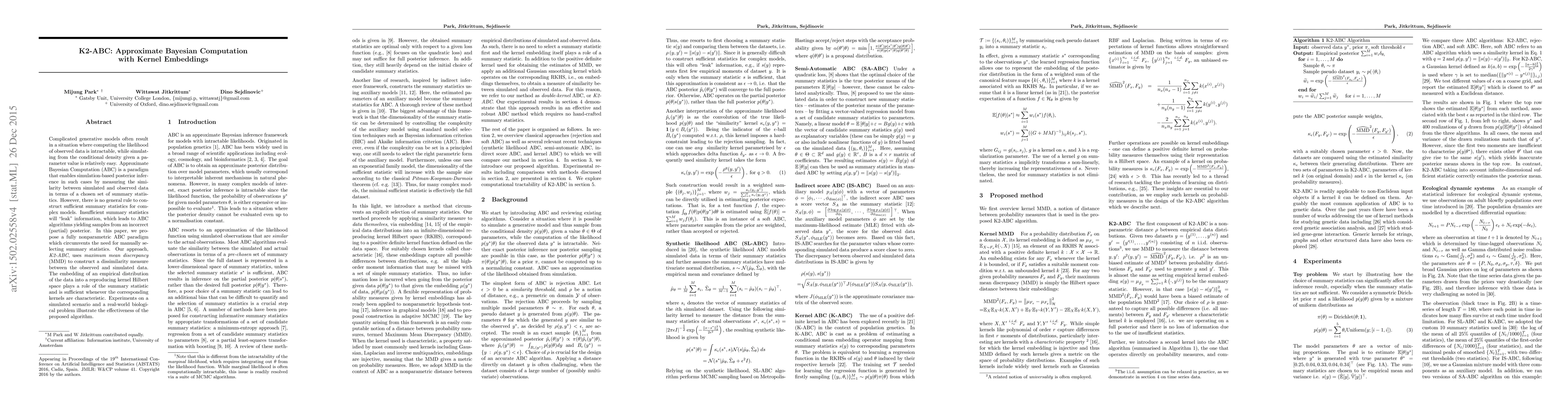 K2-ABC introduces a fully nonparametric Approximate Bayesian Computation (ABC) method that avoids the need for manually selected summary statistics by using maximum mean discrepancy (MMD) for dissimilarity measurement. This approach estimates MMD via empirical kernel embeddings, demonstrating effectiveness in both simulated and real-world biological data scenarios.