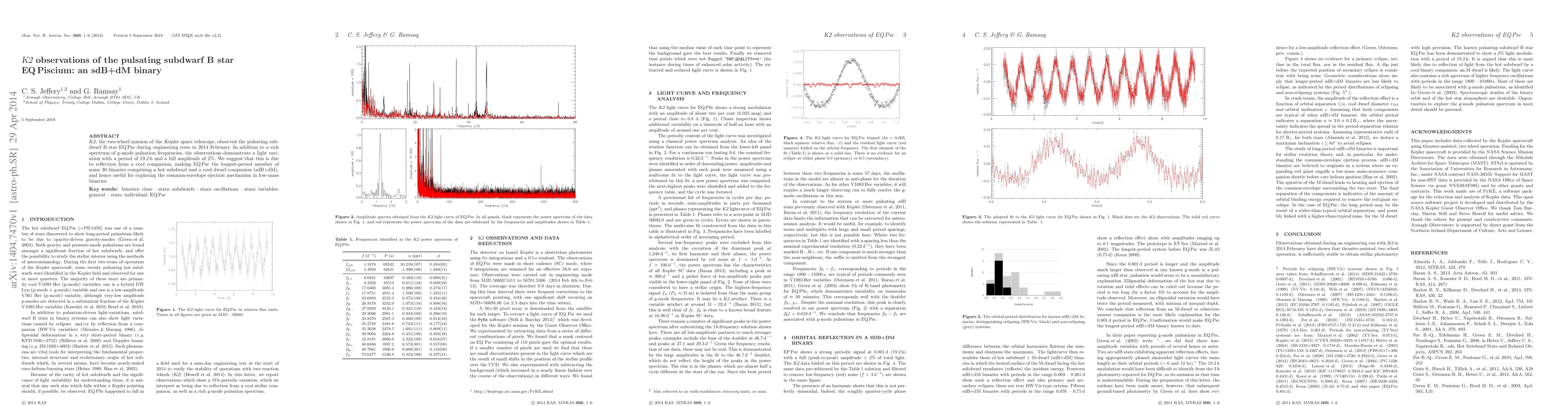 K2 observations of EQ Piscium reveal it as a pulsating subdwarf B star in an sdB+dM binary system, with a light variation likely caused by reflection from a cool companion, providing insights into common-envelope ejection mechanisms in low-mass binaries.