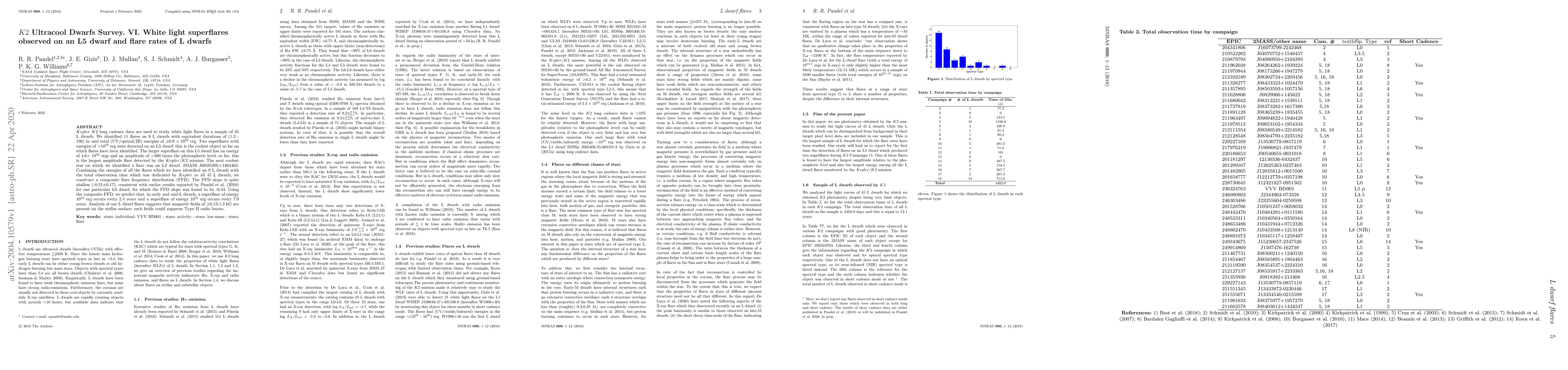 This study identifies white light superflares on L dwarfs using Kepler K2 data, detecting two superflares on an L5 dwarf, the coolest object with identified flares, including the largest amplitude flare detected by Kepler/K2. The analysis predicts flare frequencies and suggests the presence of magnetic fields on L dwarfs.