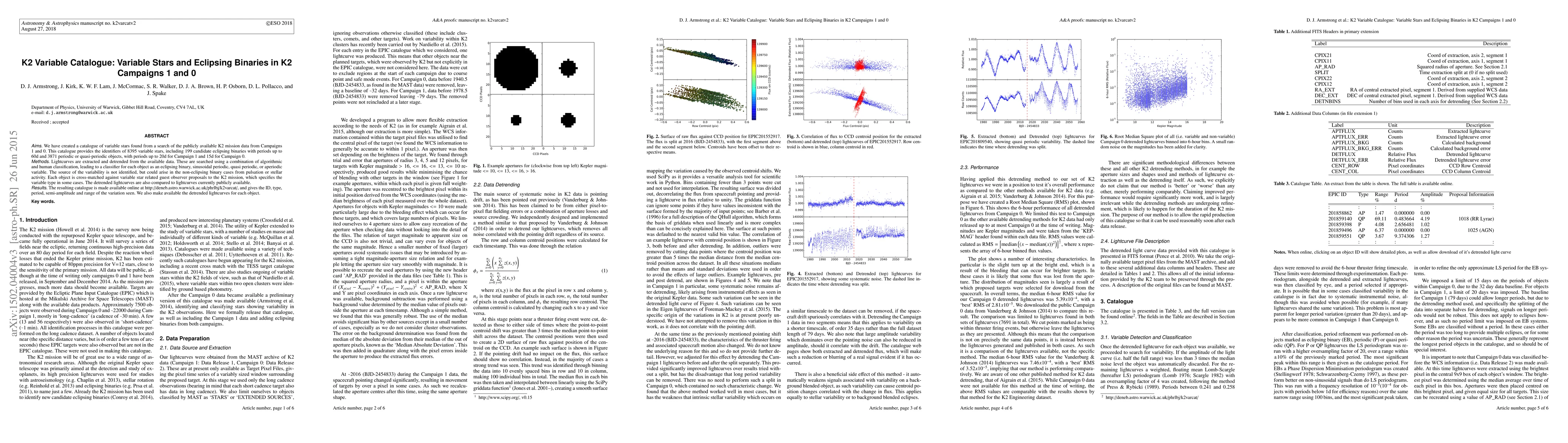 This paper presents a catalogue of 8395 variable stars identified from K2 mission data, including 199 candidate eclipsing binaries and 3871 periodic or quasi-periodic objects. The catalogue provides detailed classifications and lightcurves, and is available online for further study.