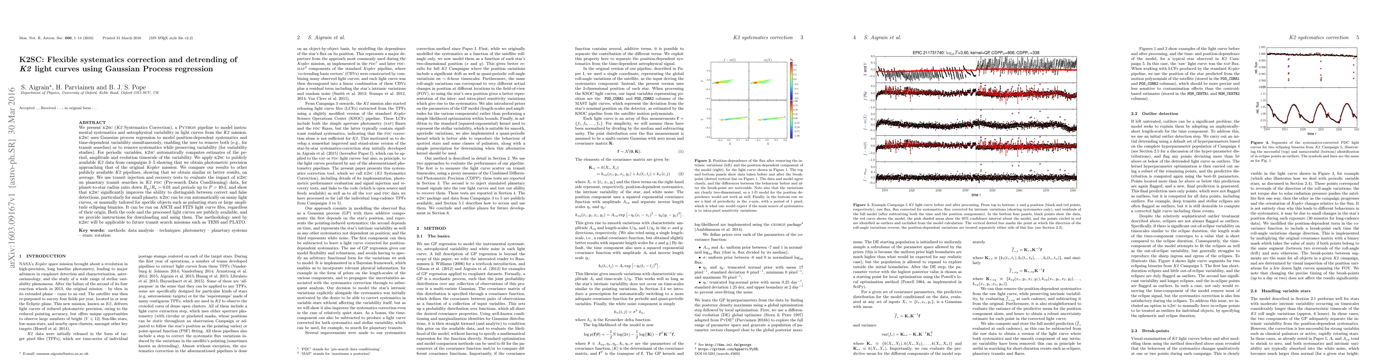 K2SC is a Python pipeline that uses Gaussian process regression to model and correct systematics in K2 mission light curves, improving photometric precision and aiding in transit searches. It offers flexible options for systematics correction and detrending, and is publicly available with processed light curves and instructions for use.
