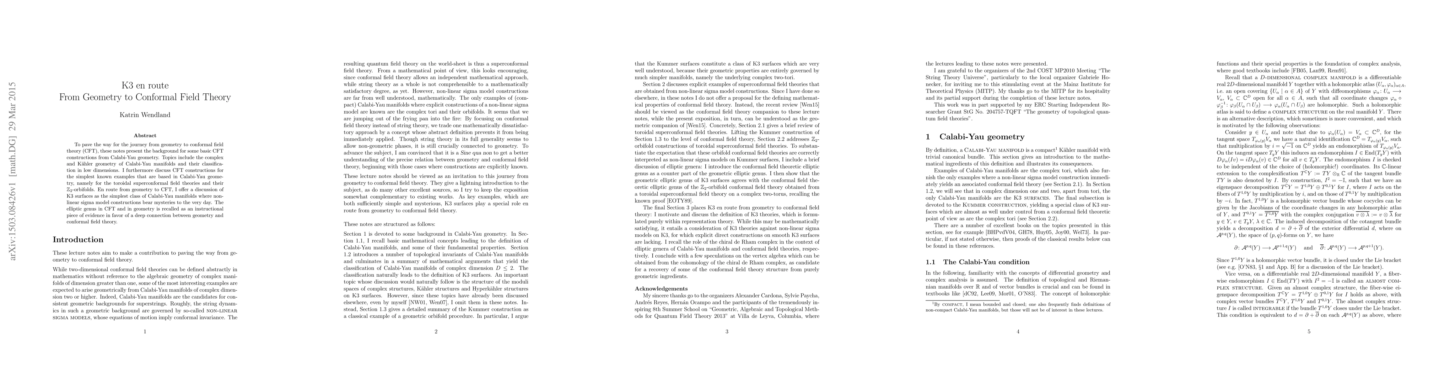 This paper explores the foundational links between Calabi-Yau geometry and conformal field theory (CFT), focusing on the classification of Calabi-Yau manifolds and their geometric properties. It highlights K3 surfaces as a key example and discusses the elliptic genus as a bridge between geometry and CFT.