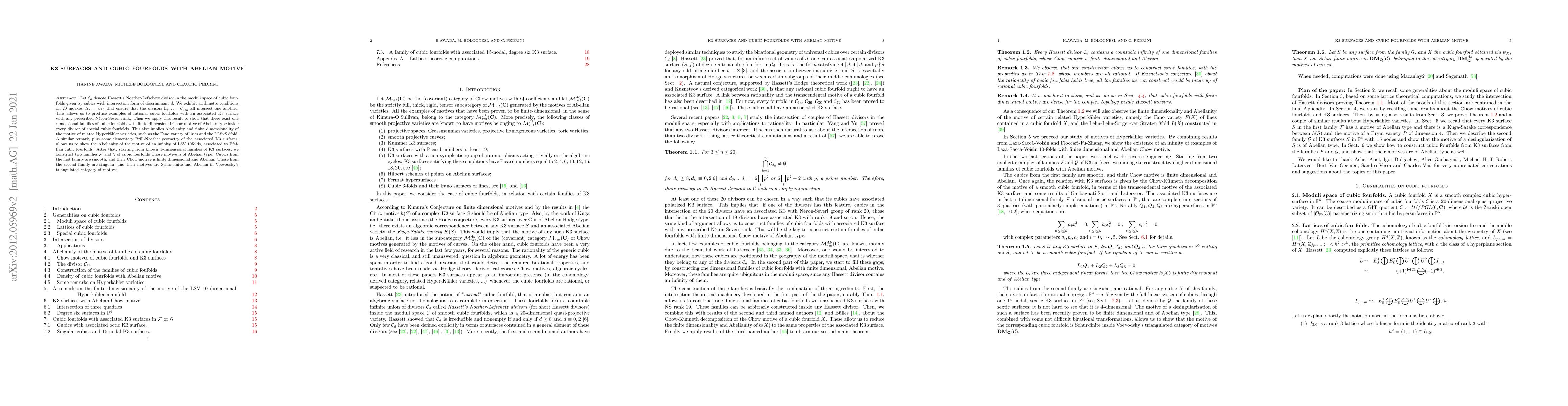 This paper explores the intersection of K3 surfaces and cubic fourfolds with Abelian motives, establishing arithmetic conditions for the intersection of specific divisors in cubic fourfold moduli spaces. It demonstrates the existence of rational cubic fourfolds linked to K3 surfaces of any N\'eron-Severi rank and proves the Abelianity and finite dimensionality of motives for several related Hyperkähler varieties.