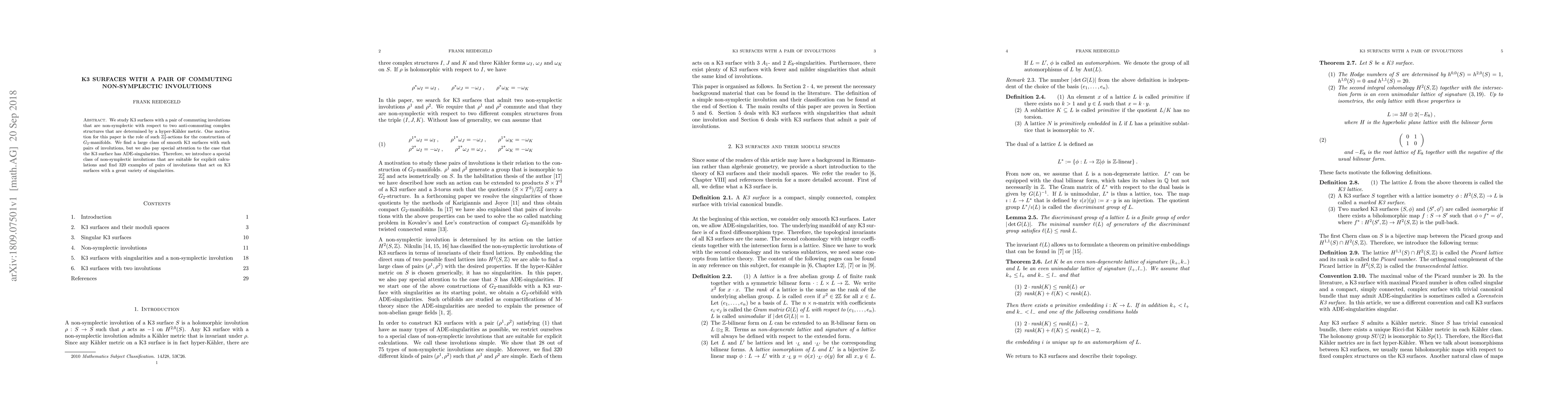 Summary: This paper investigates K3 surfaces equipped with a pair of commuting non-symplectic involutions, focusing on their role in constructing $G_2$-manifolds and presenting 320 examples of such involutions, particularly for K3 surfaces with ADE-singularities.