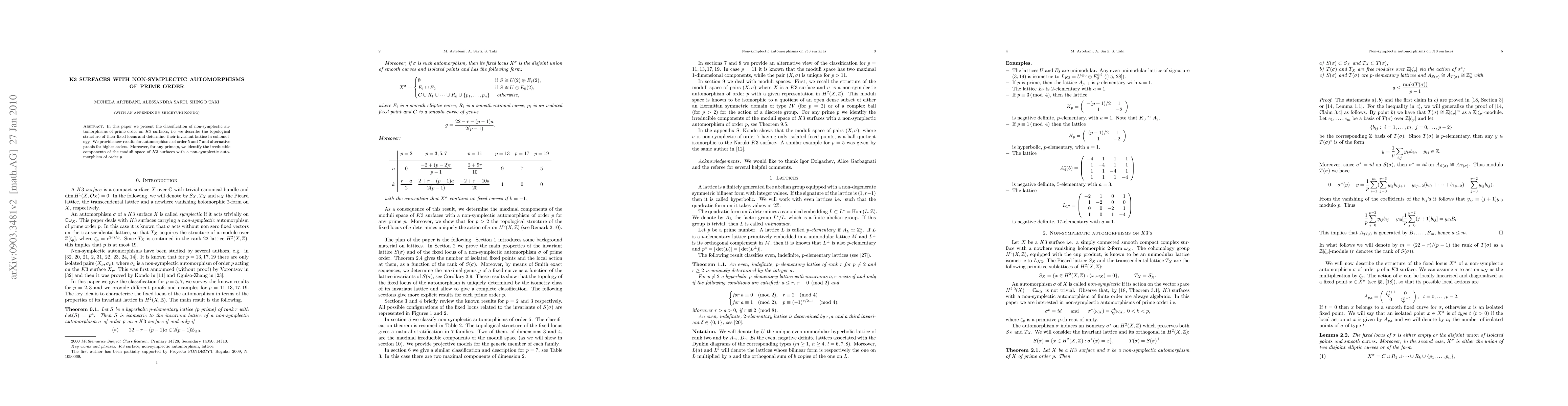 Summary: The paper classifies non-symplectic automorphisms of prime order on K3 surfaces, detailing their fixed loci and invariant cohomology lattices, with new findings for orders 5 and 7 and improved proofs for higher orders. It also identifies irreducible components of moduli spaces for such automorphisms.