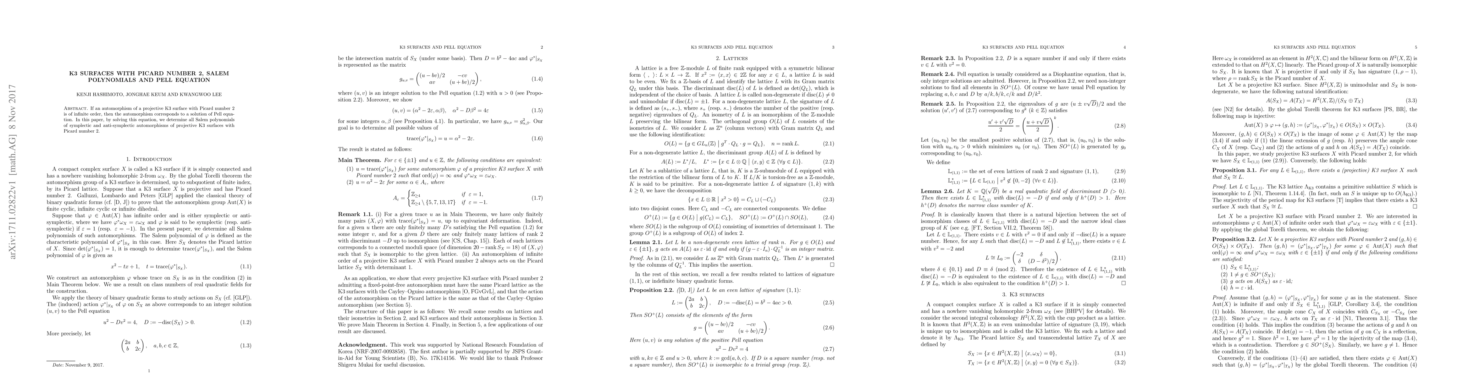 This paper identifies automorphisms of projective K3 surfaces with Picard number 2 as solutions to Pell equations, determining all Salem polynomials associated with these automorphisms through solving the Pell equation.