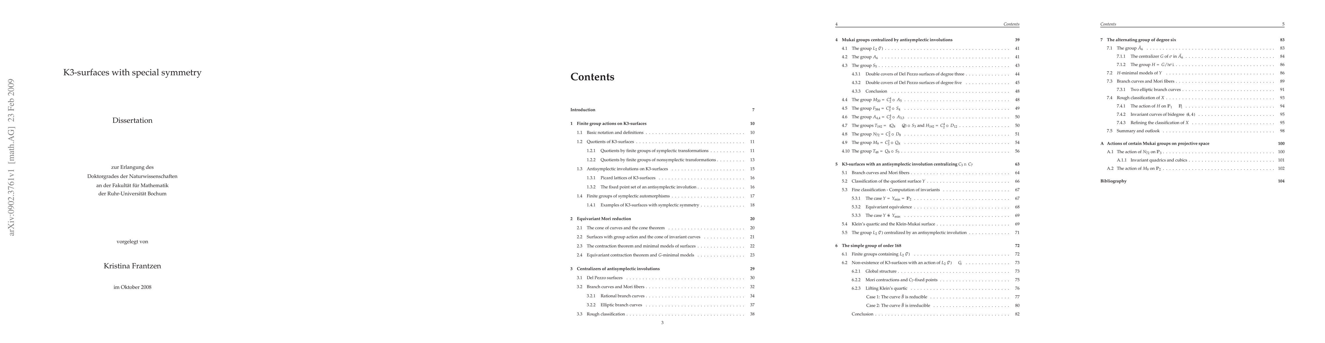 This dissertation classifies K3-surfaces with finite group actions, focusing on those with antisymplectic involutions and compatible symplectic transformations. It identifies conditions under which large or structurally rich groups act on K3-surfaces, leading to precise descriptions of these surfaces as branched double covers of Del Pezzo surfaces and resulting in classification results for maximal finite symplectic automorphism groups.