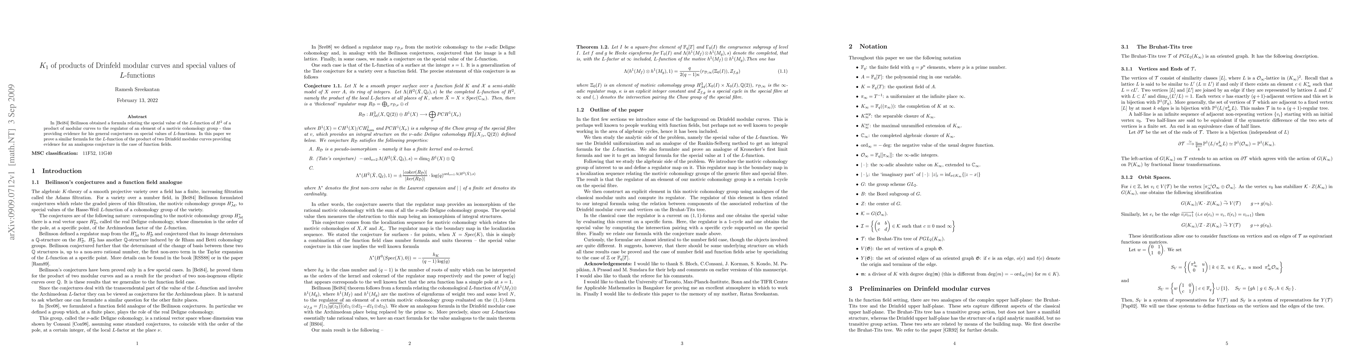 Beilinson obtained a formula relating the special value of the L-function of H^2 of a product of modular curves to the regulator of an element of a motivic cohomology group - thus providing evidence for his general conjectures on special values of L-functions. In this paper we prove a similar formula for the L-function of the product of two Drinfeld modular curves providing evidence for an analogous conjecture in the case of function fields.