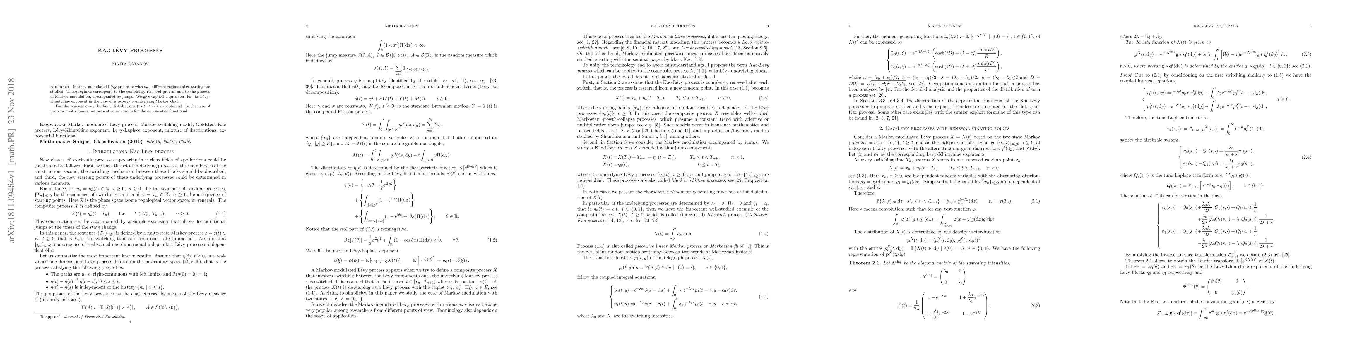 This paper investigates Markov-modulated Lévy processes with two restarting regimes: complete renewal and modulated jumps. It provides explicit expressions for the Lévy-Khintchine exponent for a two-state Markov chain and derives limit distributions for the renewal case and results for the exponential functional in the case of processes with jumps.