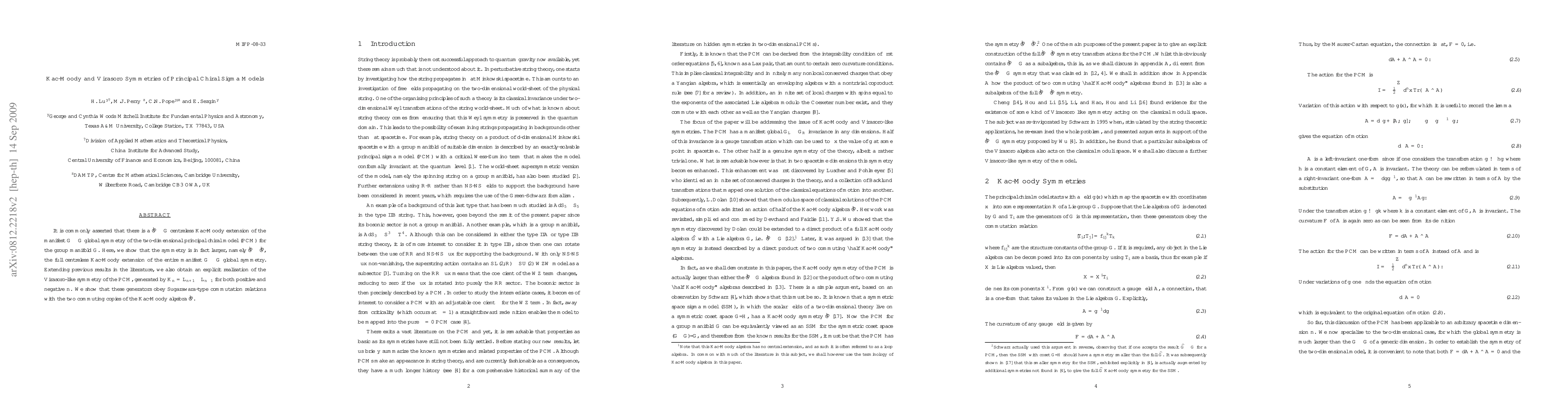 This paper demonstrates that the principal chiral sigma model's symmetry is the full centreless Kac-Moody extension, \hat G\times \hat G, rather than the previously assumed \hat G\times G. It also provides an explicit realization of the Virasoro-like symmetry, showing that the generators K_n=L_{n+1} - L_{n-1} follow Sugawara-type commutation relations with the Kac-Moody algebra.