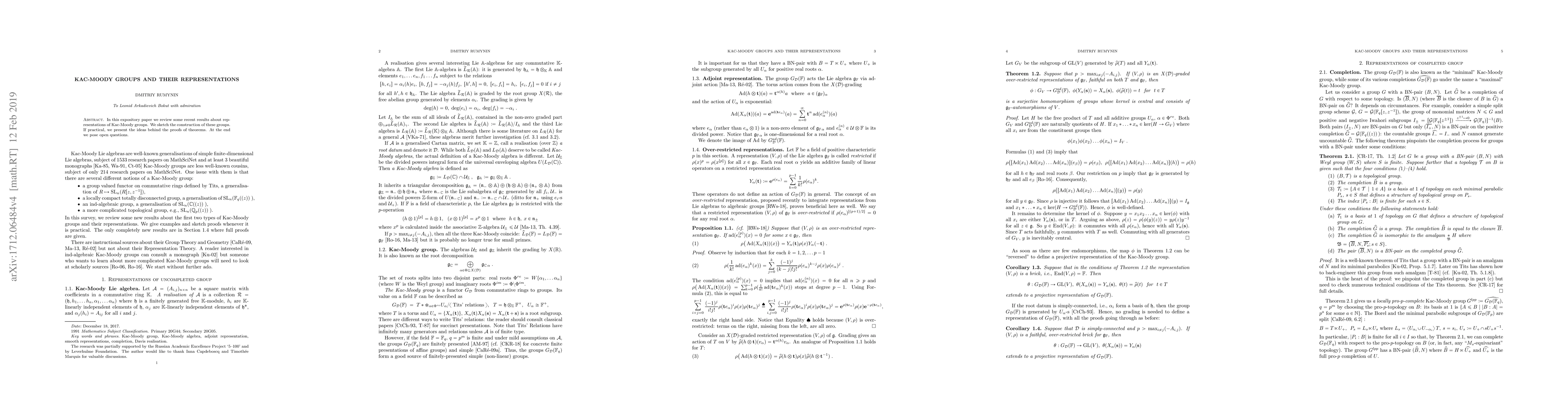 This paper reviews recent results on Kac-Moody group representations, outlining their construction and presenting key proof ideas, while posing open questions about these complex mathematical structures.