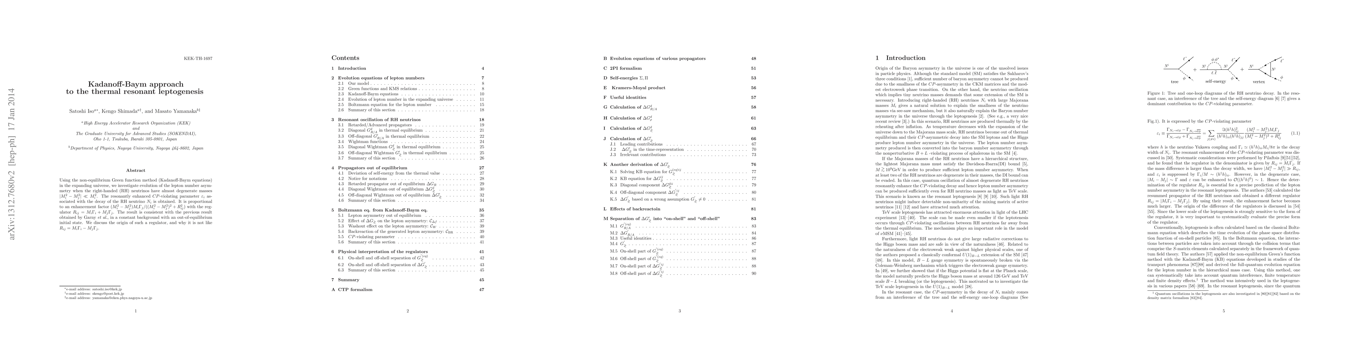 This paper employs the Kadanoff-Baym approach to study thermal resonant leptogenesis in an expanding universe, focusing on the evolution of lepton number asymmetry with nearly degenerate right-handed neutrino masses. The resonantly enhanced CP-violating parameter $\varepsilon_i$ is derived, showing a dependence on a specific regulator $R_{ij}$ that differs from previous formulations.
