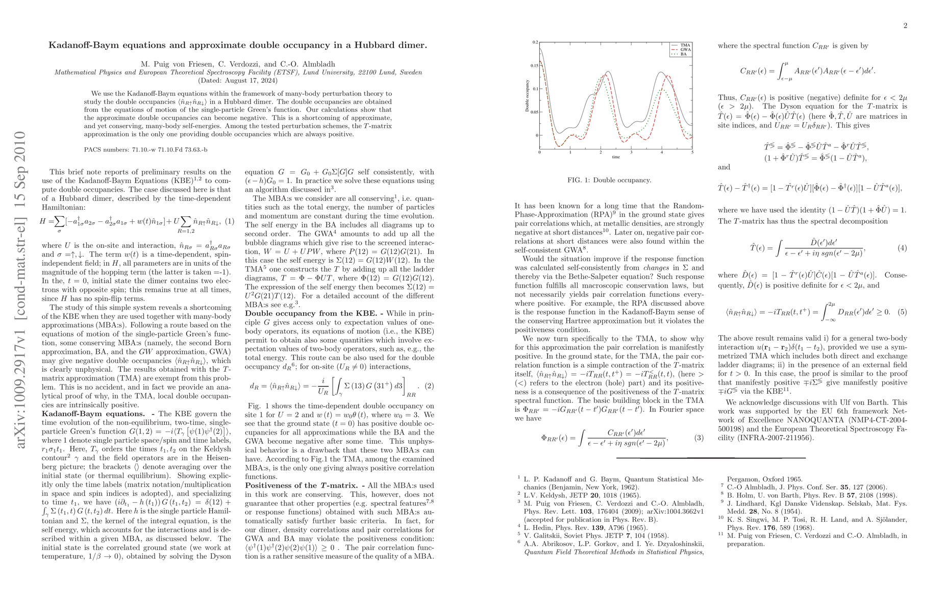 This paper employs Kadanoff-Baym equations to investigate double occupancies in a Hubbard dimer using many-body perturbation theory, revealing that approximate methods can yield negative double occupancies. The T-matrix approximation stands out as the only method providing consistently positive double occupancies.
