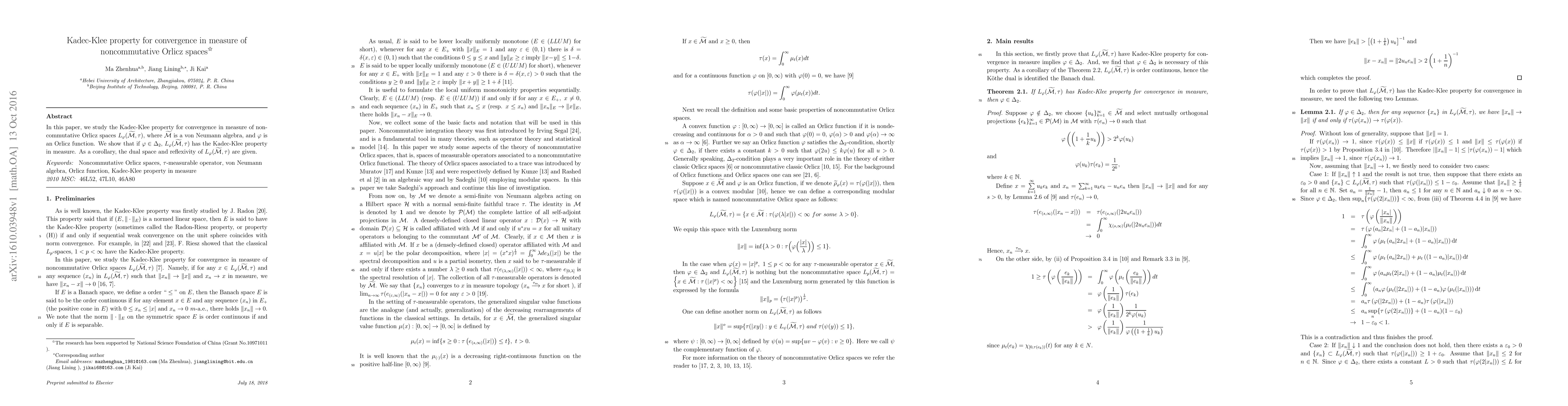 This paper investigates the Kadec-Klee property for convergence in measure within noncommutative Orlicz spaces $L_{\varphi}(\widetilde{\mathcal{M}},\tau)$. It demonstrates that if $\varphi$ satisfies $\Delta_{2}$, then $L_{\varphi}(\widetilde{\mathcal{M}},\tau)$ exhibits the Kadec-Klee property in measure, leading to conclusions about the dual space and reflexivity of these spaces.