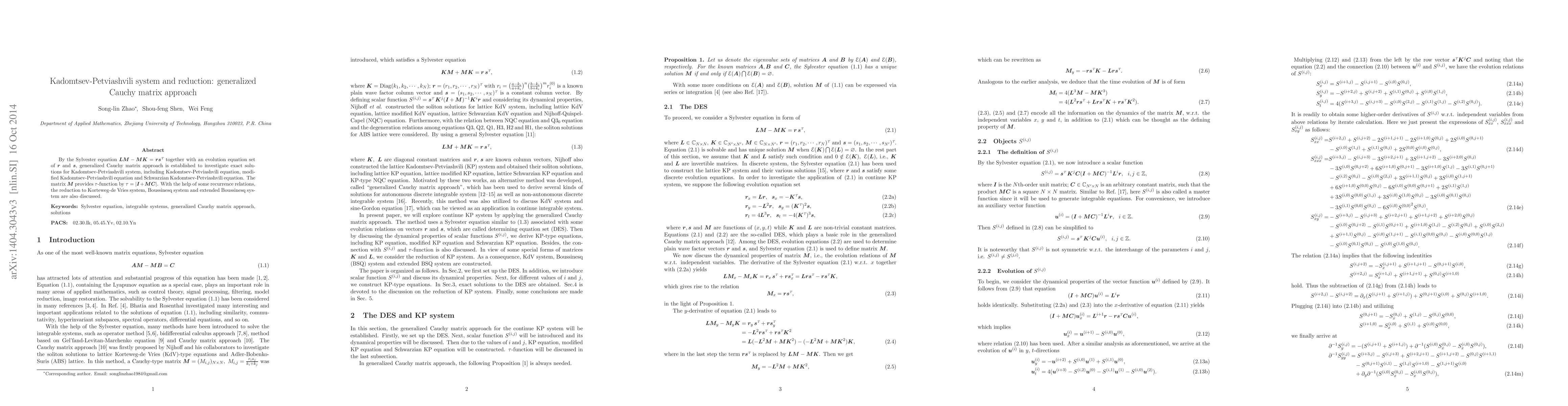 This paper utilizes a generalized Cauchy matrix approach to find exact solutions for the Kadomtsev-Petviashvili system, including its modified and Schwarzian variants, via the Sylvester equation. It also explores reductions to simpler systems like the Korteweg-de Vries, Boussinesq, and extended Boussinesq systems.