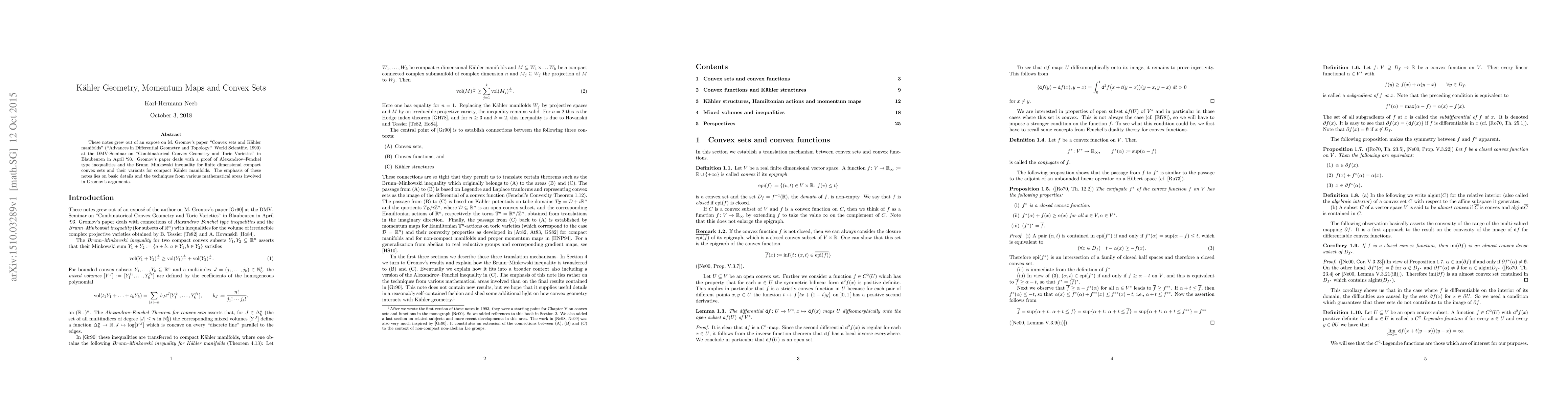 These notes grew out of an expose on M. Gromov's paper "Convex sets and K\"ahler manifolds'' ("Advances in Differential Geometry and Topology,'' World Scientific, 1990) at the DMV-Seminar on "Combinatorical Convex Geometry and Toric Varieties'' in Blaubeuren in April `93. Gromov's paper deals with a proof of Alexandrov--Fenchel type inequalities and the Brunn--Minkowski inequality for finite dimensional compact convex sets and their variants for compact K\"ahler manifolds. The emphasis of these notes lies on basic details and the techniques from various mathematical areas involved in Gromov's arguments.