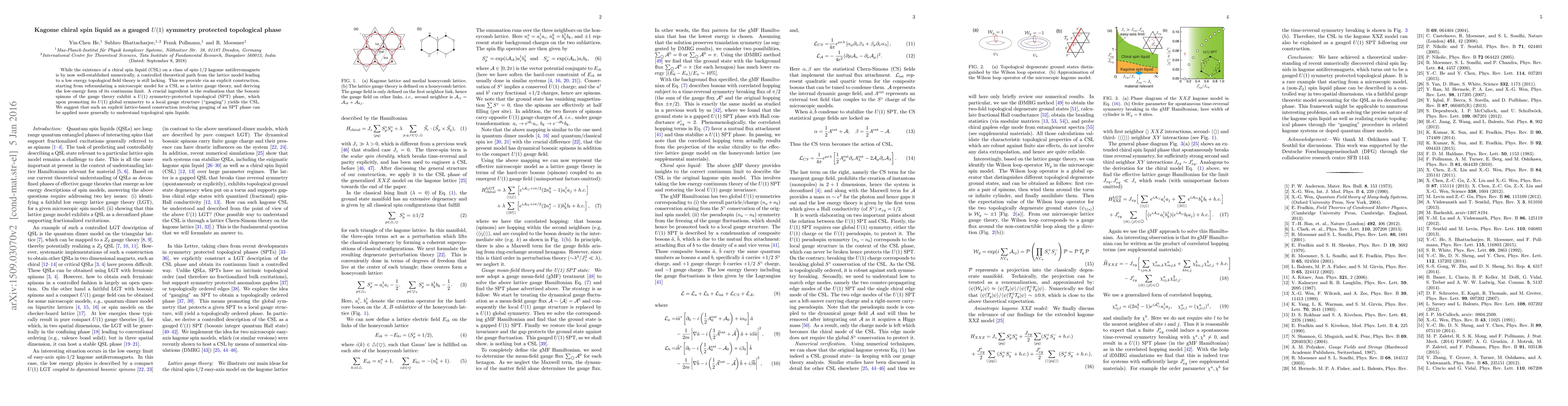 This paper constructs a theoretical framework for a kagome chiral spin liquid by reformulating it as a lattice gauge theory and gauging a $U(1)$ symmetry-protected topological phase, providing a controlled path from a microscopic model to a low-energy topological field theory. The approach suggests a general method for understanding topological spin liquids through lattice-based constructions.