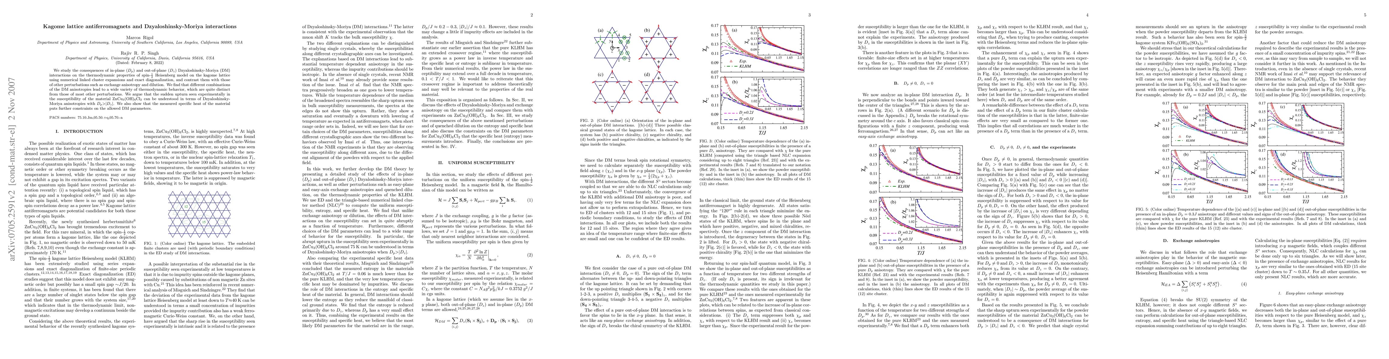 This paper explores the effects of in-plane and out-of-plane Dzyaloshinsky-Moriya interactions on the thermodynamic properties of a spin-1/2 Heisenberg model on the kagome lattice. It finds diverse thermodynamic behaviors due to different combinations of DM anisotropies, which differ significantly from other perturbations, and links experimental observations in ZnCu3(OH)6Cl2 to these interactions.