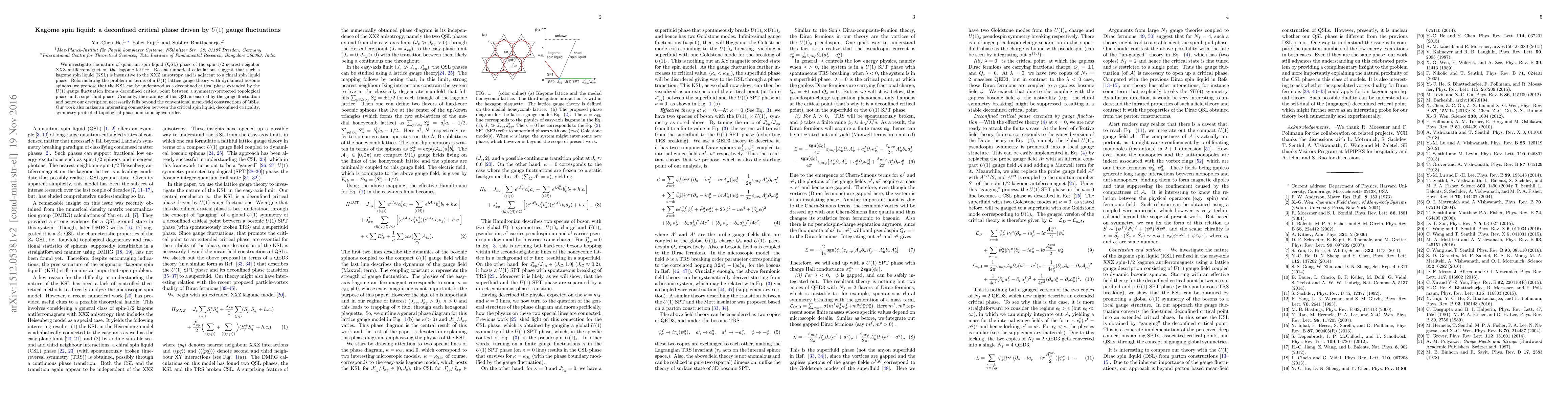 This paper explores the quantum spin liquid phase of a spin-1/2 XXZ antiferromagnet on the kagome lattice, proposing it as a deconfined critical phase driven by $U(1)$ gauge fluctuations. The stability of this spin liquid is attributed to these gauge fluctuations, extending beyond conventional mean-field theories.