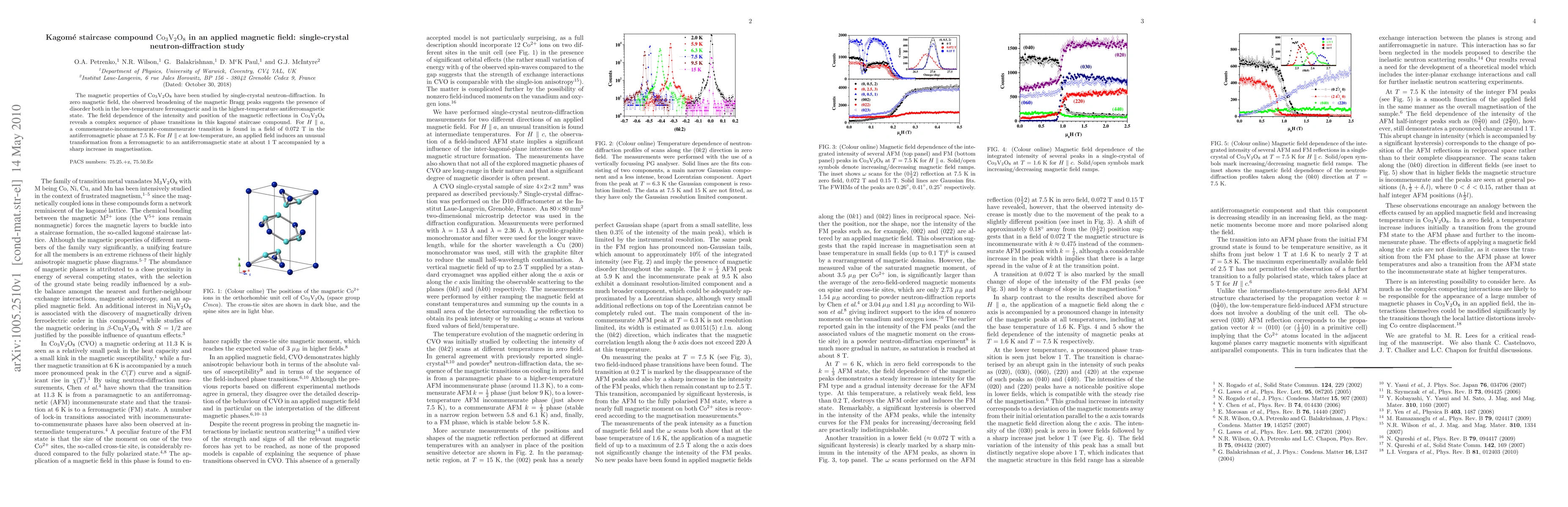 This study investigates the magnetic properties of Co3V2O8 using single-crystal neutron-diffraction, revealing complex phase transitions under applied magnetic fields. Disorder is observed in both ferromagnetic and antiferromagnetic states, with specific transitions identified for different field orientations.