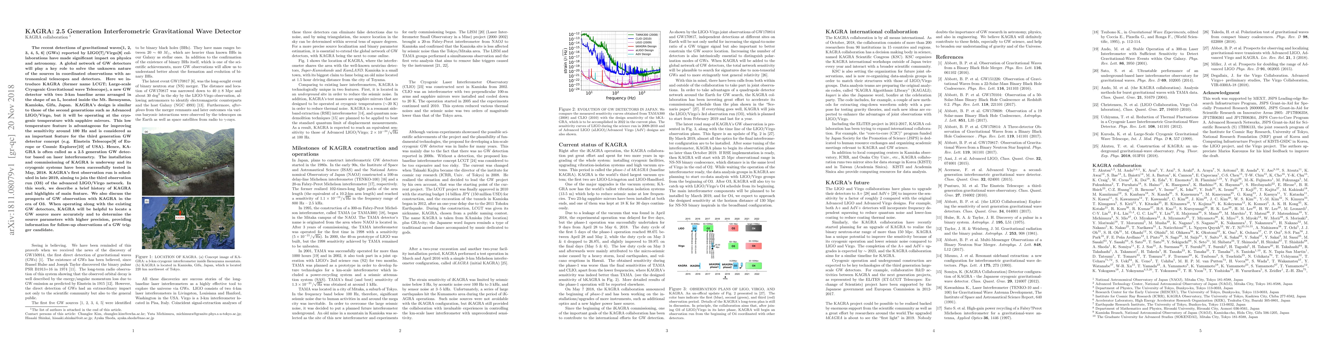 KAGRA, a 2.5 generation interferometric gravitational wave detector in Japan, features cryogenic operation with sapphire mirrors to enhance sensitivity around 100 Hz. It aims to join the LIGO/Virgo network, improving the detection and localization of gravitational wave sources.